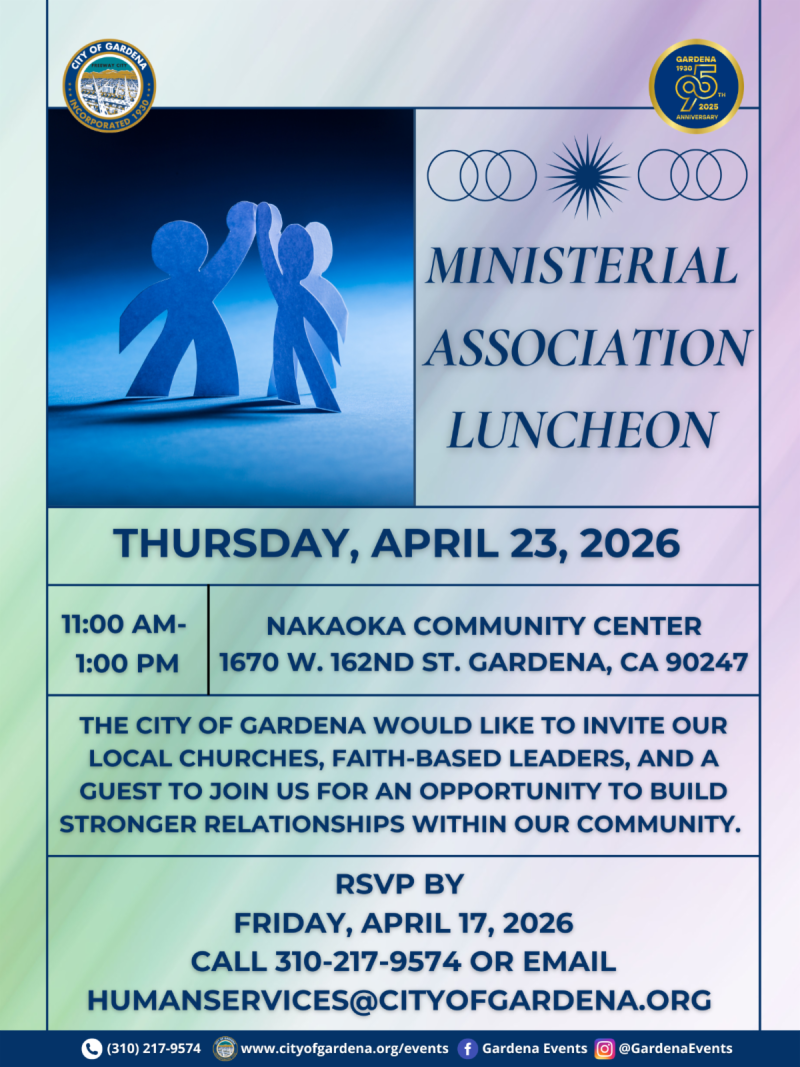 Visit www.cityofgardena.org/events or call 310-217-9537 for more details.