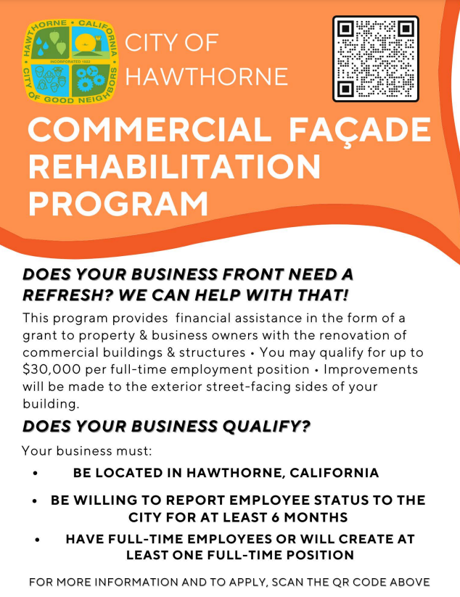 To view the guidelines, click HERE To fill out the application, click HERE Once completed, upload all requested documents and email them to CFB@cityofhawthorne.org |