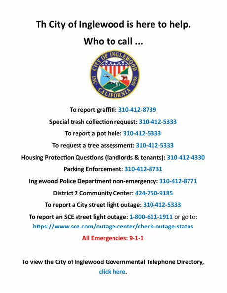 To report code enforcement violations, call: 310-412-5590.