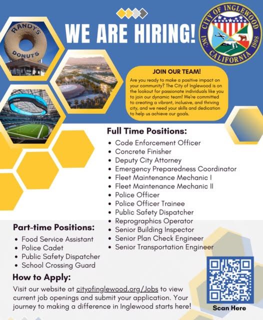 Current City of Inglewood job opportunities can be viewed by clicking on the following link: https://www.cityofinglewood.org/Jobs