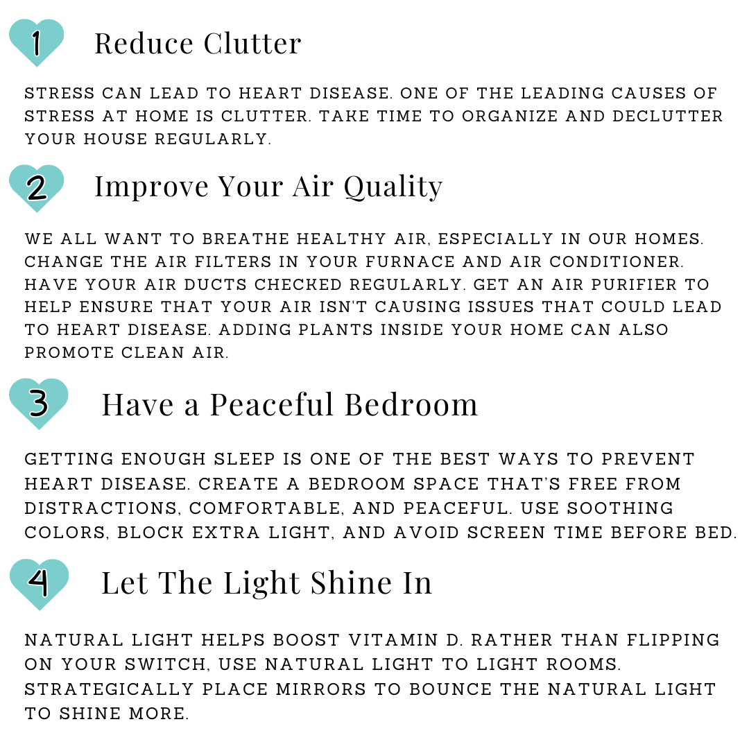 During Heart Month, we're all more mindful of our health. Did you know that small changes in your home can have a big impact on your well-being? Here are a few simple tips to create a healthier living space.