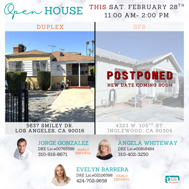 Please note: The open house for the single-family residence near Inglewood has been postponed. A new date will be announced soon.